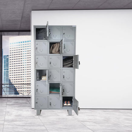 18 Door Industrial Locker Storage Metal Cabinet with Staple Locking For School, Gym, Home, Office | Powder Coated | Light & Dark Grey | 198 X 91 X 48 Cm