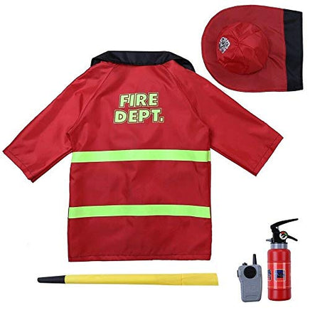 - ☆ Durable fabric and design.Holiday deals! Great for imaginative role play, pretend play, costume, or theater use. Package includes: Realistic jacket, hat ,a fire extinguisher. Also includes radio with sound effects, Hose and Axe