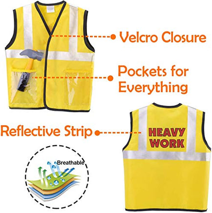 - Great Value! This construction worker role play costume set includes a hammer, saw, pliers, screwdriver, realistic nylon vest, hat and tool belt. Encourages active play and develops hand-eye coordination. Great for parties and indoor/outdoor activities!