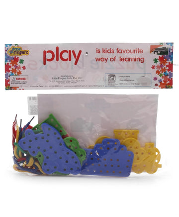 Let your child explore creativity and build essential skills with the Little Fingers Multi-Shape Lacing Cards Set – a colorful, fun, and educational threading toy for toddlers and preschoolers. This set includes a variety of animal, fruit, vehicle, and object-shaped cards, all designed with smooth edges and safe materials for little hands. Each card features pre-punched holes and comes with brightly colored laces, making it perfect for early childhood development. Kids can enjoy threading, matching shapes, recognizing colors, and improving fine motor skills, hand-eye coordination, and concentration through play. Whether at home, in preschools, or on the go, this lightweight and durable lacing toy is a great addition to your child’s learning toolkit – a screen-free and mess-free activity!
