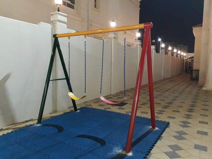 Details: If you're looking for a kids' outdoor playground which can handle tons of fun, you're staring at the right swing set. The XIANGYU Swing Set is built to handle lots of fun and kids. This swing set accommodates 1 children & 1 Toddler so don't worry about any child being left out . This outdoor playground isn't just generous in size, though; this kids' playset is also strong in design. Crafted with a powder-coated steel frame, you don't have to worry about this swing set standing up to kids or the elements. On top of being sturdy, the foam-padded legs are soft enough to withstand impact, while the contoured slide is molded enough so your child stays put after descending. Get an outdoor play equipment set and peace-of-mind, together, in 1 reliable package. Get the Xiangyu Kids Swingset. This Play swing is Just perfect for Outdoors, Gardens, Amusement Parks, Schools & Malls