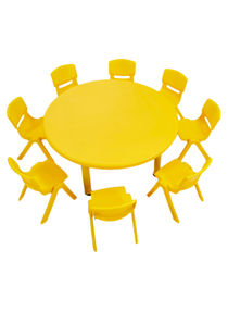 - Children need to interact with kids their age and round activity tables in the classroom offer a suitable design to make that happen. This round table set is suitable for use in the home and accommodates children from the ages of 2-6 years of age.