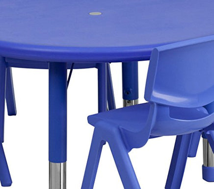Details: Setup a collaborative table set for kids to interact by using round activity tables. Designed for safety around rambunctious toddlers, the table has rounded edges and the plastic stack chairs are constructed of metal-free materials. This activity table set serves as a play table or kids dining table in the classroom or home. Built for comfort, the shell chairs are a one-piece contoured designed to promote proper posture. Not only are these chairs designed properly, but they are lightweight so kids can feel independent by moving the chairs themselves. With this play activity table set setup in the playroom you're always prepared for play dates and birthday parties. Low in maintenance, these toddler chairs and activity table wipe clean with ease after snacks. This play activity table set will be your all purpose set for meal time, snacks, crafts and learning activities. As your child grows out of the 10" seat chair, replace with our 12" plastic stackable school chair or 13.25" plastic stackable school chair.
